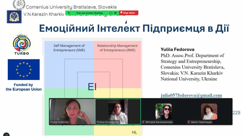 Тренінг на тему «ЕМОЦІЙНИЙ ІНТЕЛЕКТ ПІДПРИЄМЦЯ У ДІЇ» провела доцент кафедри маркетингу та торговельного підприємництва Навчально-наукового інституту «Українська інженерно-педагогічна академія» Харківського національного університету імені В.Н. Каразіна, к.ек.наук, доцент кафедри Стратегії та підприємництва Університету Коменського в Братиславі, Словаччина Юлія Федорова.